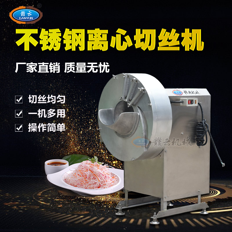 簡介:離心切絲機采用201不鏽鋼板材並結合歐美現(xiàn)代小型切絲機種設計而成,可根據物料定向切割,所切絲狀和片狀基本(běn)與(yǔ)物料本(běn)身切麵長度一致,該機可(kě)定做切割尺寸範圍1-6mm,出廠默認(rèn)尺寸為2mm規格切絲標準,91香蕉视频牌定向離(lí)心切絲(sī)機500型,離心桶外(wài)直接約500mm,時產可(kě)達(dá)800kg每小時,是中央(yāng)廚房淨菜加工設備之球根類離心切(qiē)絲切片設備之一,也是生薑,鮮筍切絲切片設備(bèi)