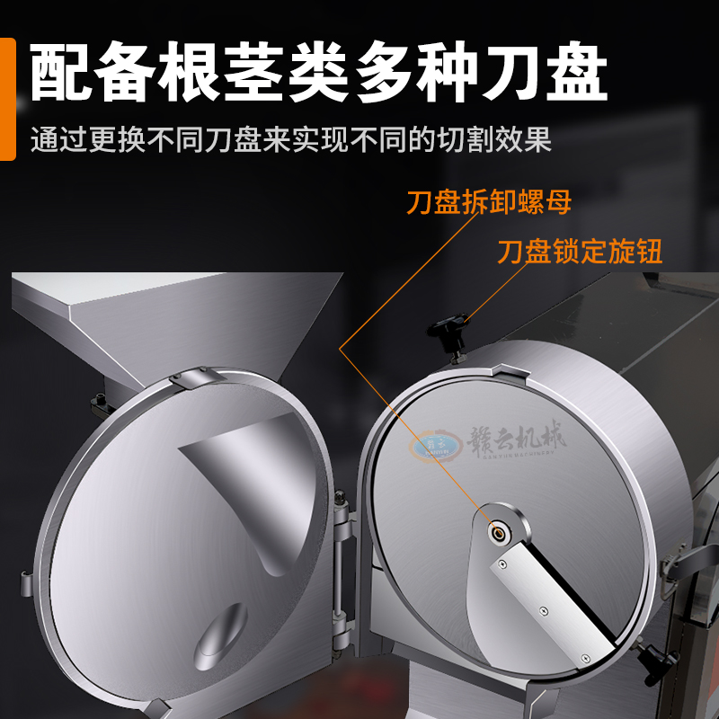 簡(jiǎn)介:多(duō)功(gōng)能切片切絲切丁切菜機可以快速、方便的針對球根莖類(lèi)蔬菜的切片(piàn)切絲切丁使(shǐ)用。機器(qì)配帶三個刀盤,通過更(gèng)換刀盤,實現(xiàn)切片(piàn)切絲切丁,切割尺寸支持(chí)定製,一機(jī)多用、省(shěng)時省力。整機采用不鏽鋼製造,衛生、美(měi)觀、耐(nài)用。這款(kuǎn)切菜(cài)機常用於切割土豆、藕、茄子、紅(hóng)薯、竹筍、山藥、洋芋、黃瓜、西葫蘆、蘿卜等。適用(yòng)於酒店、食堂、廚房中的多功能切菜機。