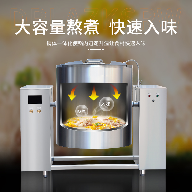 簡介:大容量可傾(qīng)斜式電磁湯(tāng)鍋,使用不鏽鋼材質,鍋體(tǐ)多重聚能環使鍋(guō)體受熱均勻,熱能快速轉化並且受熱後(hòu)不易冷(lěng)卻,湯鍋采用可搖擺設計,方便清洗和出料,並且(qiě)擁有400L大容量設計,每一次(cì)熬湯、熬粥(zhōu)、鹵肉、食品加熱更大量,此款商用湯鍋廣泛(fàn)用於中央廚房,預製(zhì)菜加工、酒店、食(shí)堂等場所