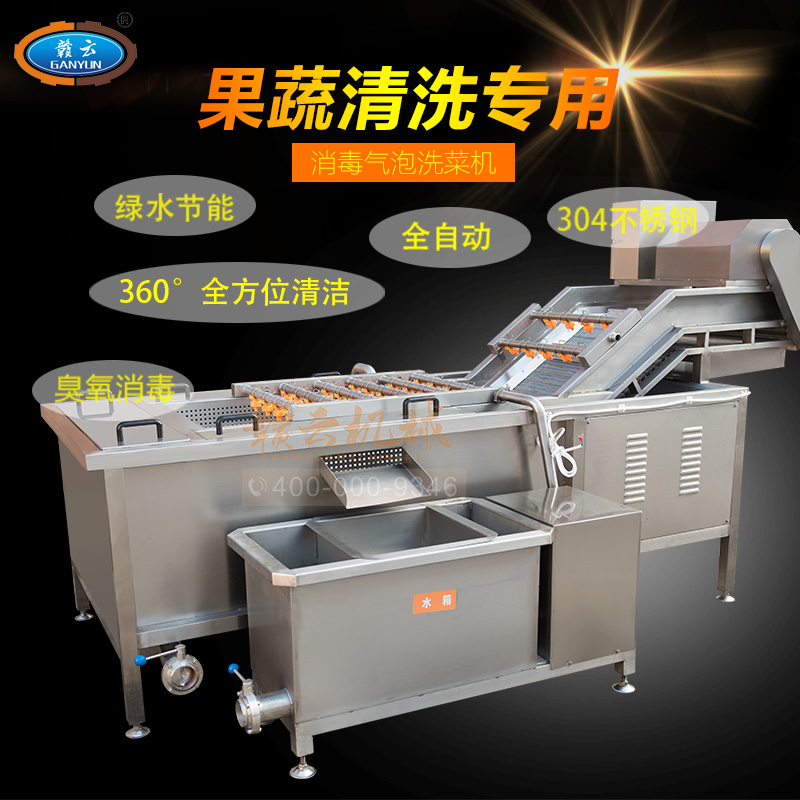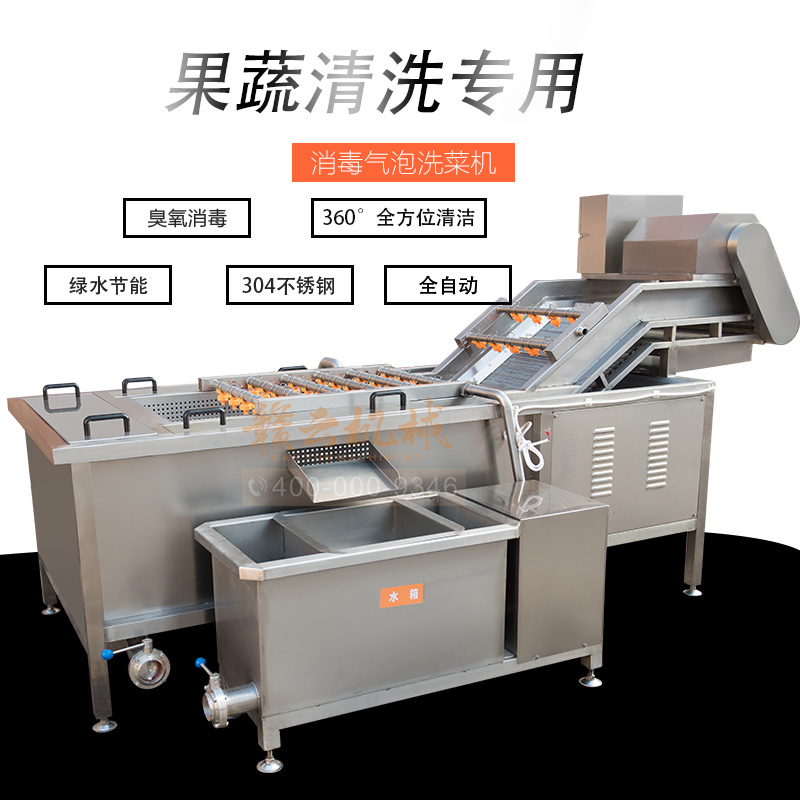 氣(qì)泡清洗機適用於蔬菜、水果、水產品(pǐn)、葉狀、根莖類等產品。清洗機還具(jù)備有效殺滅有(yǒu)害細菌、分解殘留(liú)農藥的功能,通過活性炭過濾係統循環利(lì)用清洗水(shuǐ),可節約高達80%的用水量(liàng)。