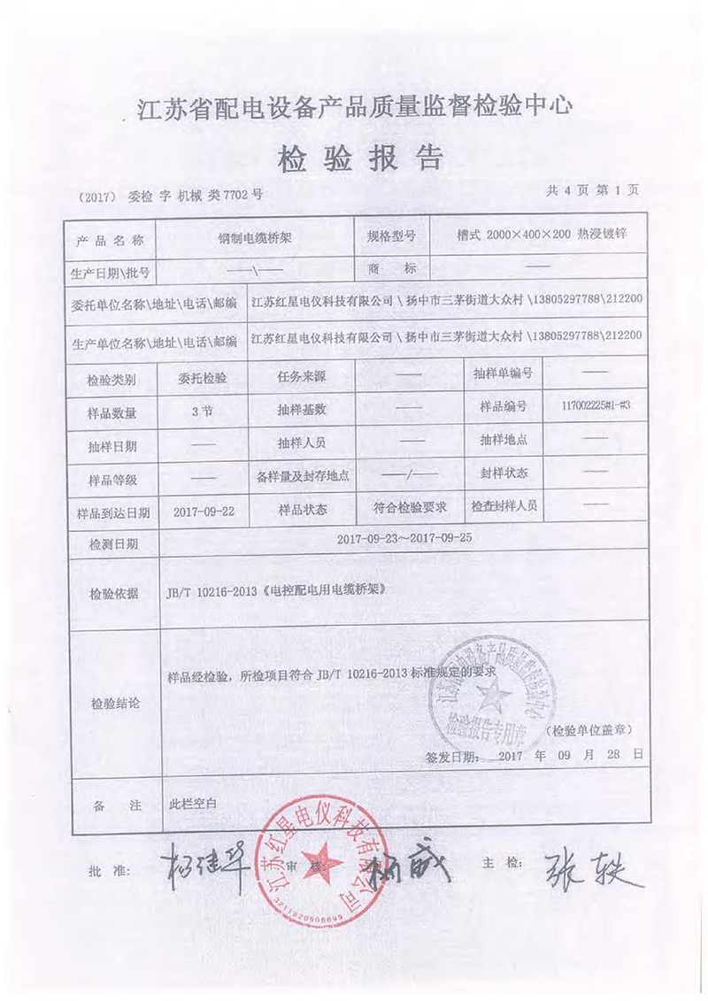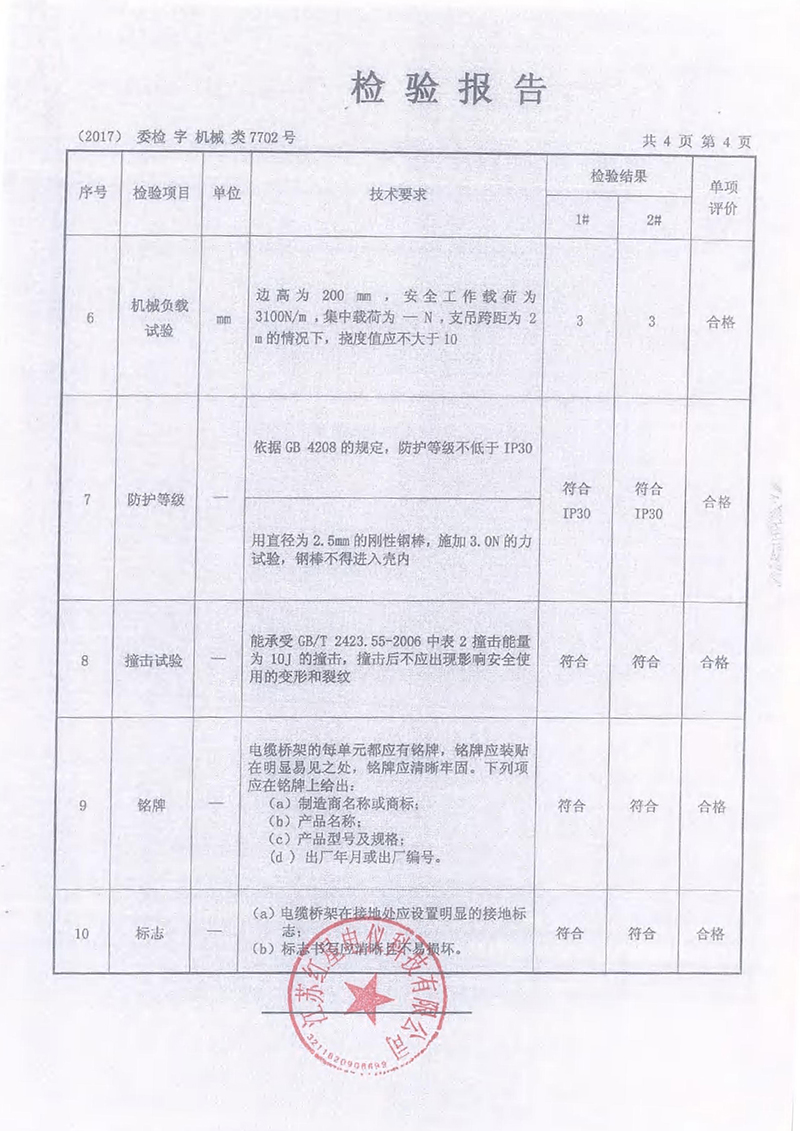 鋼(gāng)製(zhì)電纜橋架檢驗(yàn)報(bào)告